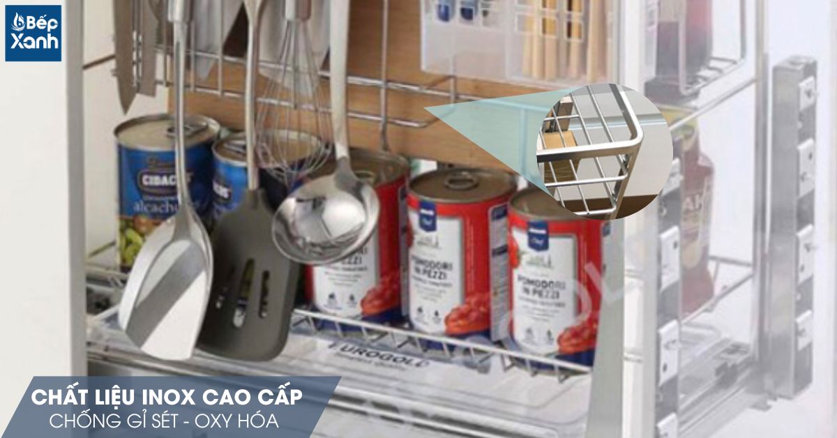 Sản phẩm được hoàn thiện từ chất liệu inox 304 là một trong những loại vật liệu cao cấp được sử dụng rộng rãi trong ngành công nghiệp chế tạo và gia công. Với độ bền cao và khả năng chống oxy hóa hoàn hảo, sản phẩm đảm bảo rằng nó sẽ không bị gỉ sét hay biến dạng trong quá trình sử dụng và sẽ mang lại cho bạn sự an tâm và yên tâm khi sử dụng sản phẩm trong thời gian dài. Không chỉ vậy, inox 304 còn là một chất liệu không độc hại và an toàn cho sức khỏe con người, không ảnh hưởng đến việc lưu trữ sản phẩm. Đây là một trong những yếu tố quan trọng khi lựa chọn sản phẩm lưu trữ thực phẩm và dụng cụ bếp, đặc biệt là đối với những sản phẩm tiếp xúc trực tiếp với thực phẩm.