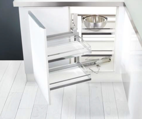 - Sử dụng dễ dàng và tiện lợi: Hafele không ngừng cập nhật các công nghệ mới nên giá góc mở phải Hafele 548.21.002 không chỉ có khả năng chịu lực lớn mà còn được thiết kế để người dùng có thể sử dụng một cách tiện lợi và hiệu quả nhất. Giá có thiết kế 2 tầng, bạn có thể thoải mái lưu trữ nhiều xoong nồi bát đĩa và lấy chúng khi cần sử dụng một cách nhanh chóng. Trạng bị công nghệ ưu việt nên khi bạn mở cửa tủ ra, bộ giá trước được kéo ra khỏi tủ, còn bộ giá sau thì di chuyển về phía trước nhờ vào ray trượt giảm chấn giúp chuyển động êm ái nhẹ nhàng, không lo gây tiếng ồn ảnh hưởng đến mọi người xung quanh, thiết kế mở rộng toàn phần, dễ dàng kéo toàn bộ đồ vật được đựng trong tủ ra bên ngoài, quan sát đồ vật rõ ràng, lấy đồ thuận tiện.