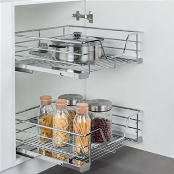 - Sử dụng dễ dàng và tiện lợi: Hafele không ngừng cập nhật các công nghệ mới nên giá xoong nồi 450mm Hafele 549.03.142 không chỉ có khả năng chịu lực lớn mà còn được thiết kế để người dùng có thể sử dụng một cách tiện lợi và hiệu quả nhất. Với thiết kế 2 tầng, bạn có thể thoải mái lưu trữ nhiều xoong nồi bát đĩa, chai lọ gia vị, thực phẩm khô và lấy chúng khi cần sử dụng một cách nhanh chóng vì chỉ cần thao tác kéo mở cửa tủ là giá sẽ tự chuyển động theo nhờ vào ray trượt giảm chấn giúp chuyển động êm ái nhẹ nhàng, không lo gây tiếng ồn ảnh hưởng đến mọi người xung quanh, thiết kế mở rộng toàn phần với cơ chế tự đóng, dễ dàng kéo toàn bộ đồ vật được đựng trong tủ ra bên ngoài, quan sát đồ vật rõ ràng, lấy đồ thuận tiện.