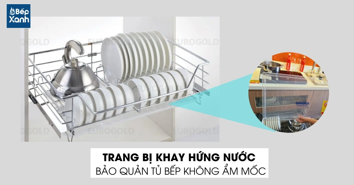 Bên dưới giá bát đĩa âm tủ Eurogold ES61260 được trang bị thêm khay hứng nước tiện lợi, có thể tháo rời dễ dàng để đổ nước và vệ sinh. Nhờ vậy tủ bếp luôn được thông thoáng, không bị đọng nước, bảo vệ tủ bếp không bị ẩm mốc và hư hỏng.