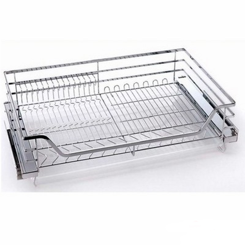 Giá được thiết kế âm tủ gắn cánh, phù hợp với tủ có kích thước 900mm. Nhà sản xuất tích hợp giảm chấn ở 2 bên thanh ray, giúp chuyển động ra vào trở nên dễ dàng, trơn tru. Chỉ với thao tác kéo nhẹ cánh tủ, bạn có thể dễ dàng nhìn thấy toàn bộ giá, giúp việc sắp xếp và sử dụng xoong nồi bát đĩa trở nên dễ dàng hơn.