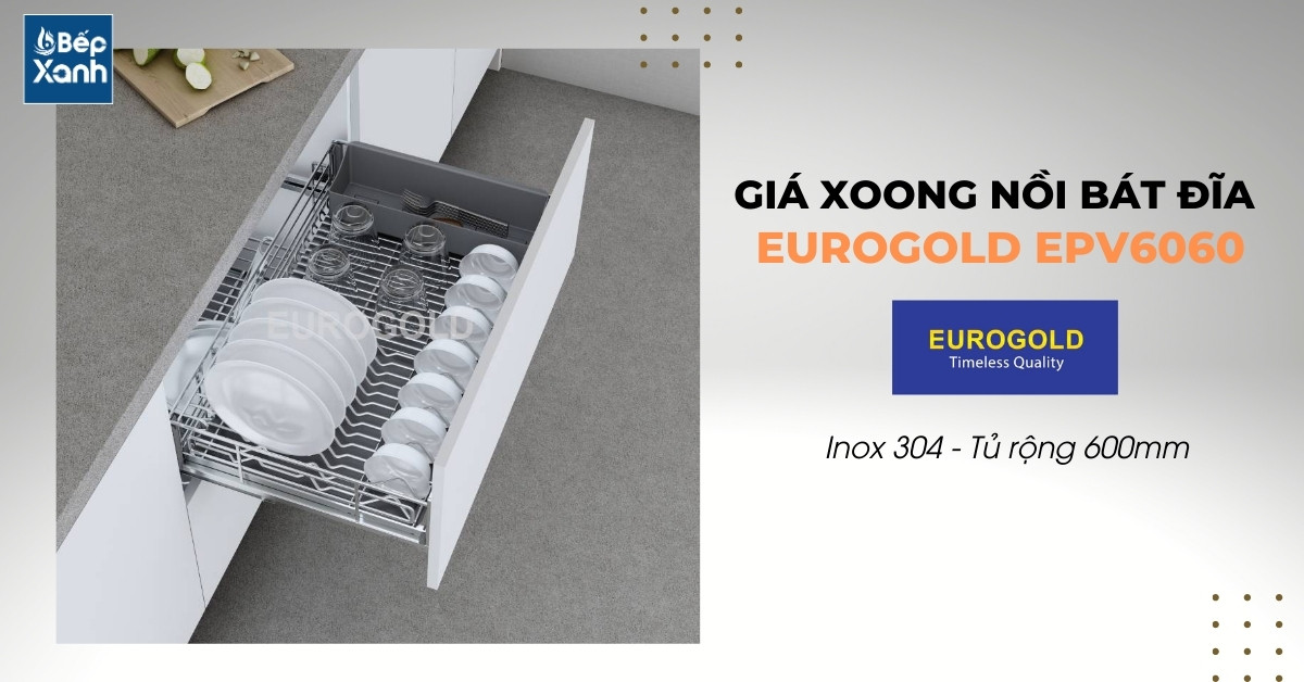 Kệ chén đĩa EPV6060 là một trong những sản phẩm mới nhất của thương hiệu Eurogold. Với thiết kế lắp âm tủ cùng chiều rộng 600mm