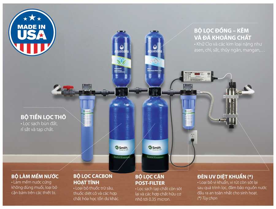 Hệ thống lọc nước đầu nguồn A. O. Smith nhập khẩu chính hãng từ Mỹ với công nghệ ưu việt mang lại sự tiện nghi và an toàn cho cả gia đình: