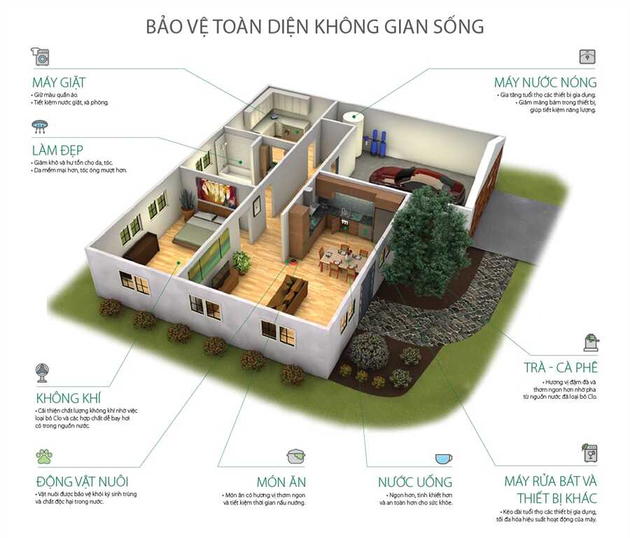 Làm mềm nước triệt để, mang lại nguồn nước sạch và an toàn tuyệt đối cho gia đình.