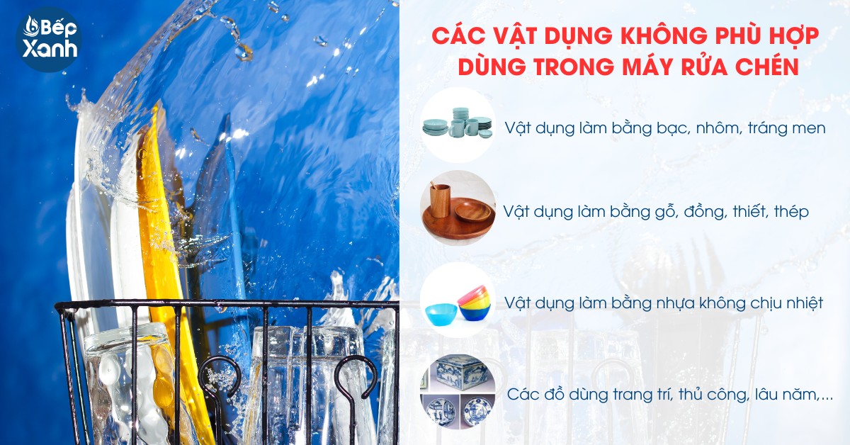 Các vật dụng không phù hợp dùng trong máy rửa chén