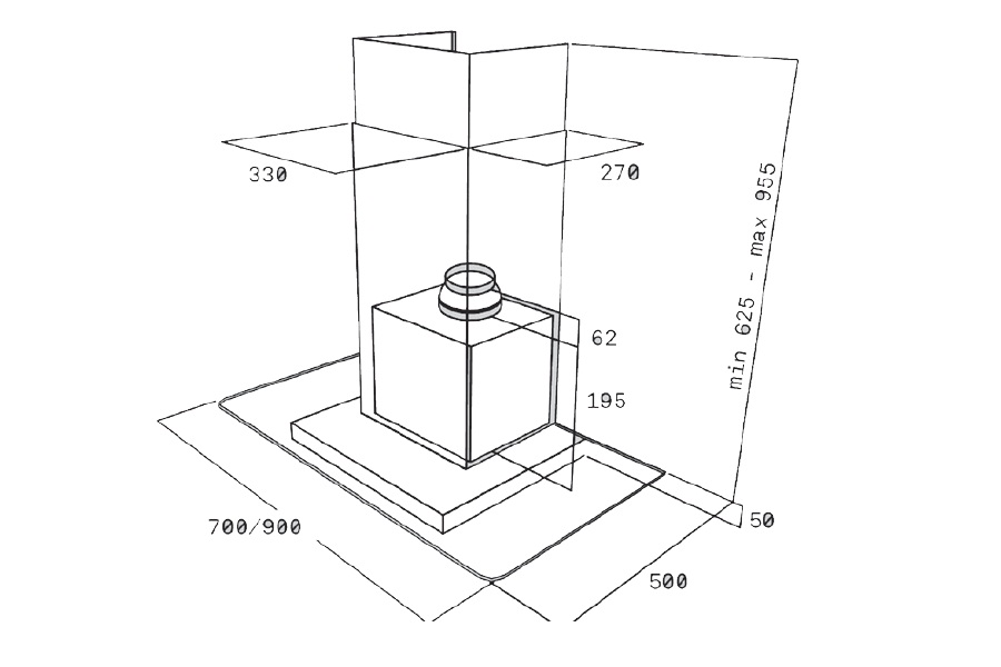 Tính năng | Điều khiển bằng điện tử 3 mức công suất hút + 1 chế độ tăng cường. Đèn LED hỗ trợ chiếu sáng không gian nấu nướng Đèn báo vệ sinh lưới lọc Chức năng hẹn giờ tắt máy. Công suất hút khi dùng than: 825 m3/h (không nối ống thoát) Công suất tối đa: 637 m3/h Công suất hút tối thiểu: 298 m3/h Độ ổn: 52 dB – 60 dB |