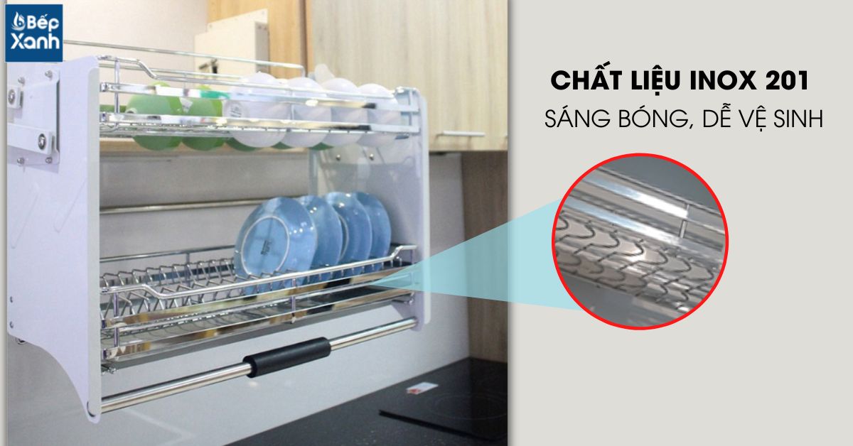 Giá bát nâng hạ Eurogold EUI190 được làm từ chất liệu inox 201, bề mặt mạ crome sáng bóng dễ dàng vệ sinh. Với chất lượng đạt chuẩn Châu Âu chắc chắn sẽ làm hài lòng khách hàng. Do đó, bạn có thể yên tâm khi sử dụng sản phẩm lâu dài mà không lo gỉ sét, bong tróc bề mặt.