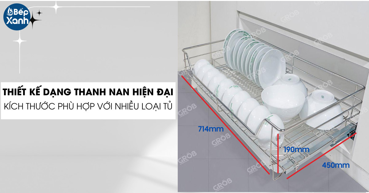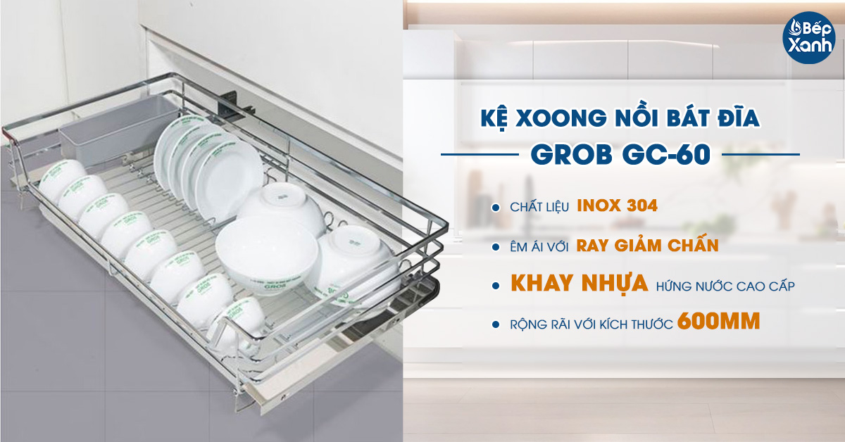 Kệ bát đĩa đa năng inox nan dẹt tủ 600 Grob GC-60