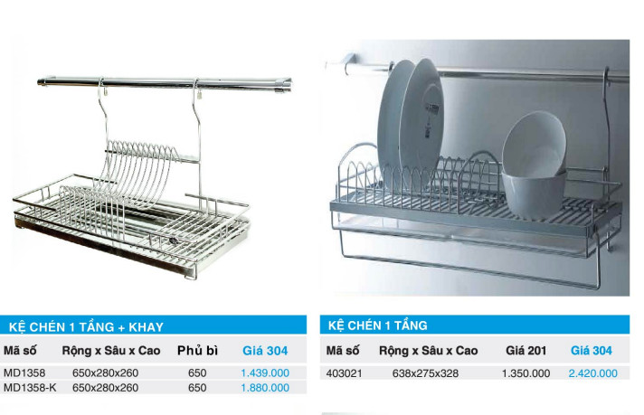 Kệ chén 1 tầng +khay inox 304 – MD1358-K là phụ kiện rất được các gia đình lựa chọn trong thời gian qua. Kệ chén giúp bạn lưu trữ được rất nhiều chén, đĩa, tô, dùng trong nấu nướng hằng ngày.giúp tiết kiệm không gian căn bếp, Sản phẩm được nhập khẩu, bảo hành 1 năm rỉ sét.