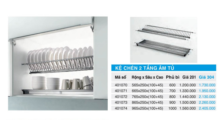 Kệ Chén 2 Tầng Âm Tủ inox 201 Higold 401072