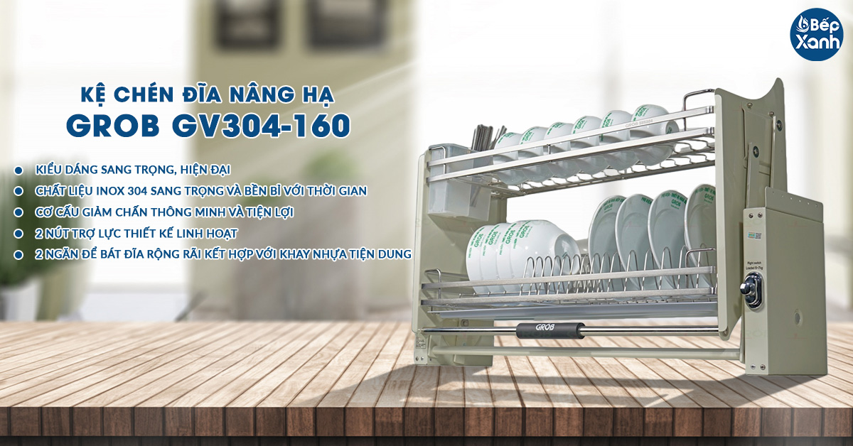 Để giúp việc nội trợ trở nên dễ dàng, hiện nay các loại phụ kiện tủ bếp được ra đời và sản xuất vô cùng tiện lợi. Trong đó, kệ chén đĩa nâng hạ GV304-160 của thương hiệu Grob là một trong những mẫu phụ kiện được người tiêu dùng sử dụng rộng rãi. Hãy cùng Bếp Xanh điểm qua đặc điểm nổi bật của mẫu phụ kiện này nhé!