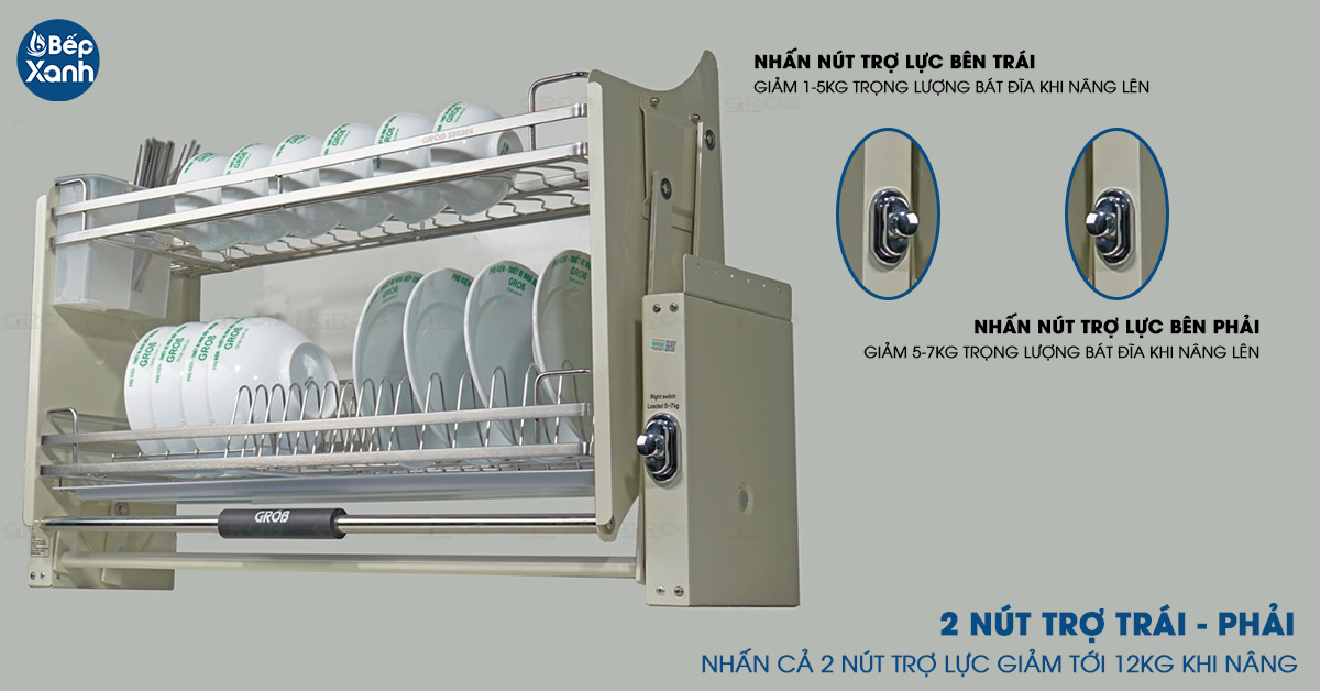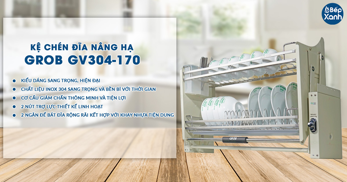 Nếu bạn đang chọn lựa cho gia đình của mình một chiếc kệ chén đĩa nâng hạ nhằm tiện lợi trong việc sắp xếp chén dĩa một cách thẩm mỹ và tiện lợi hơn thì kệ chén dĩa nâng hạ GV304-170 của thương hiệu Grob sẽ không làm bạn thất vọng. Với những tính năng tiện ích như nâng hạ dễ dàng, cấu tạo từ inox cao cấp siêu bền, thiết kế 2 tầng rộng rãi, trang bị khay hứng nước,... Đây sẽ là một chiếc phụ kiện tủ bếp bạn nên sở hữu cho gia đình mình!