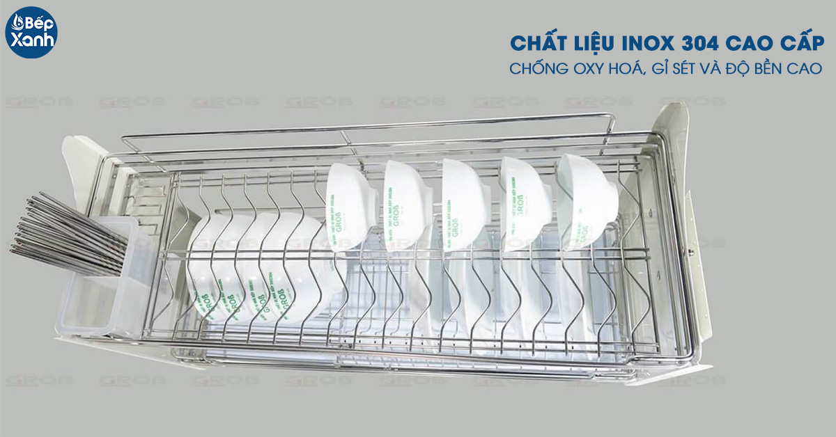 KỆ CHÉN ĐĨA NÂNG HẠ INOX SUS304 TỦ 900 GROB GV304-190