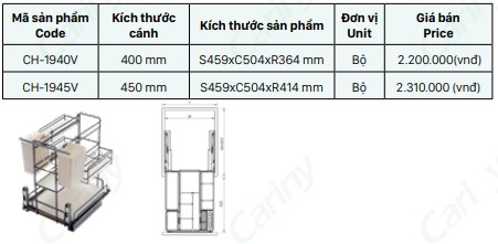 KỆ GIA VỊ, DAO THỚT (sơi OVAL,sơn NANO) Cariny CH-1930V/1940V/1945V
