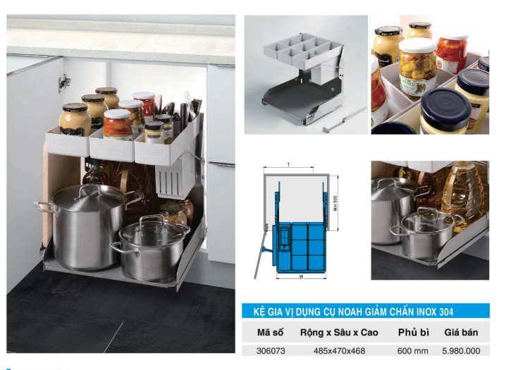 •  Kệ gia vị dụng cụ noah giảm chấn được làm bằng chất liệu inox hộp 304.