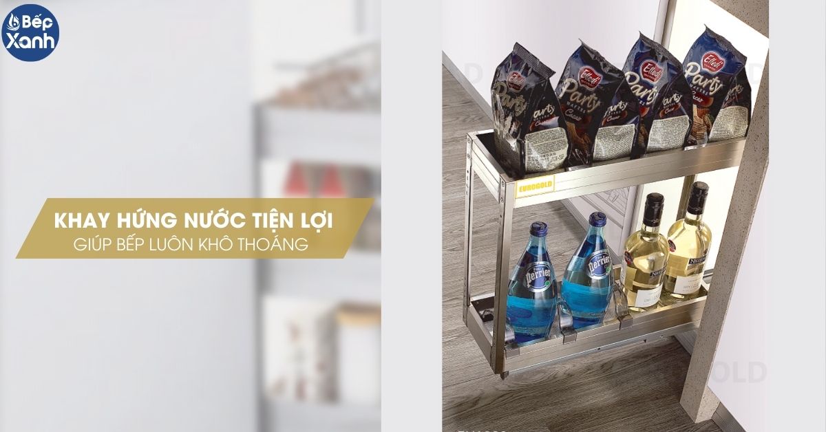 Trang bị thêm khay đựng nước tiện lợi làm nổi bật ưu điểm của sản phẩm. Vì vậy, sản phẩm kệ gia vị Eurogold được mọi người yêu thích nhờ vào khay chứa nước thừa phía dưới cùng giúp hứng phần nước vô tình đổ vào nhằm bảo vệ tủ bếp luôn khô thoáng trách bị ẩm mốc hư hỏng.