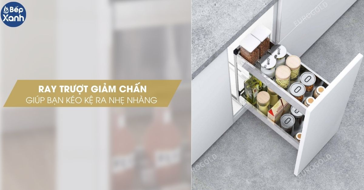 Kệ gia vị hộp Eurogold EU1220 là phụ kiện tủ bếp thông minh với tính năng ray trượt giảm chấn, giúp bạn đóng/mở mượt mà và hạn chế va đập mạnh trong quá trình sử dụng. Thiết kế này mang đến cho người dùng trải nghiệm tuyệt vời, đặc biệt là khi bạn đang trong quá trình nấu nướng và lấy các loại gia vị một cách nhanh chóng và thuận tiện. Ray trượt giảm chấn được tích hợp trong sản phẩm Eurogold EU1220 giúp việc kéo ra và đóng lại kệ gia vị trở nên nhẹ nhàng và không gây tiếng ồn khó chịu.