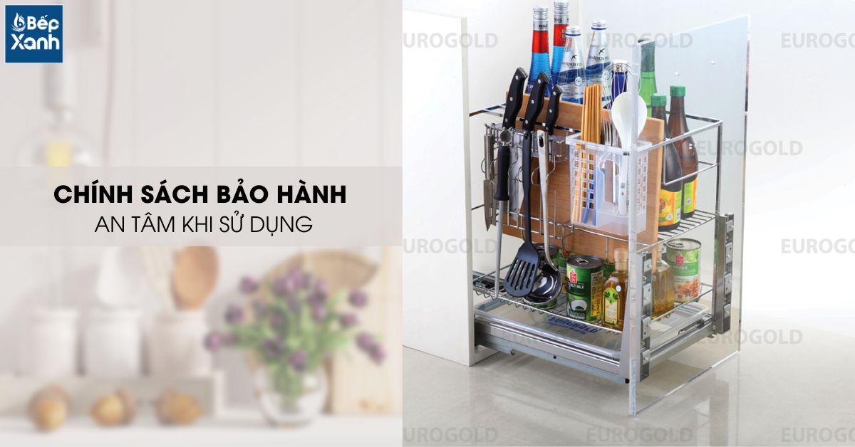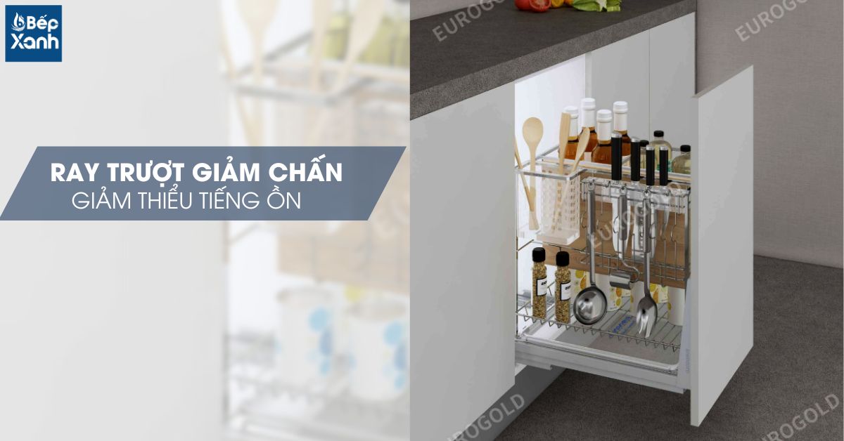 Giá dao thớt Eurogold ERO2040B không chỉ có thiết kế đẹp mắt mà còn được trang bị với các tính năng an toàn vượt trội. Ray trượt giảm chấn được thiết kế giúp người dùng sử dụng kéo ra/đẩy vào một cách trơn tru hơn. Đồng thời, còn giúp giảm thiểu tiếng ồn và tránh va đập khi sử dụng. Eurogold ERO2040B là một trong những món phụ kiện cho tủ bếp mà bạn cần sở hữu ngay cho căn bếp nhà bạn.