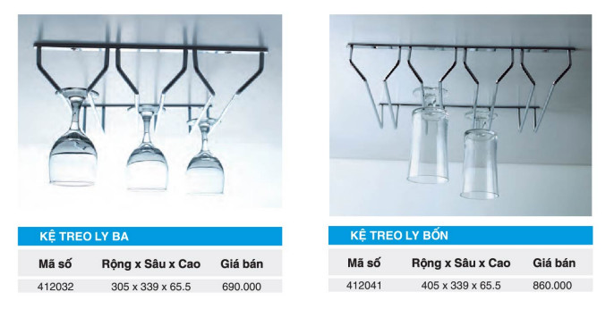 Kệ treo ly bốn: được thiết kế dưới dạng treo gồm 4 hàng, mẫu mã đẹp, gọn gàng, tiện lợi khi sử dụng, chất liệu inox, không bị gỉ sét theo thời gian.