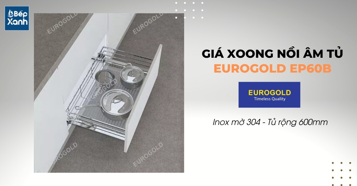 Giá xoong nồi nan âm tủ ray giảm chấn Eurogold EP60B được ưa chuộng bởi nhiều yếu tố: thiết kế âm tủ hiện đại, chất liệu inox độ bền cao với hệ thống ray giảm chấn chắc chắn mang đến trải nghiệm sử dụng cực kỳ an toàn và thoải mái cho người dùng. Hãy đến ngay Bếp XANH để được hỗ trợ tư vấn và mua sắm sản phẩm này với giá ưu đãi nhất nhé.