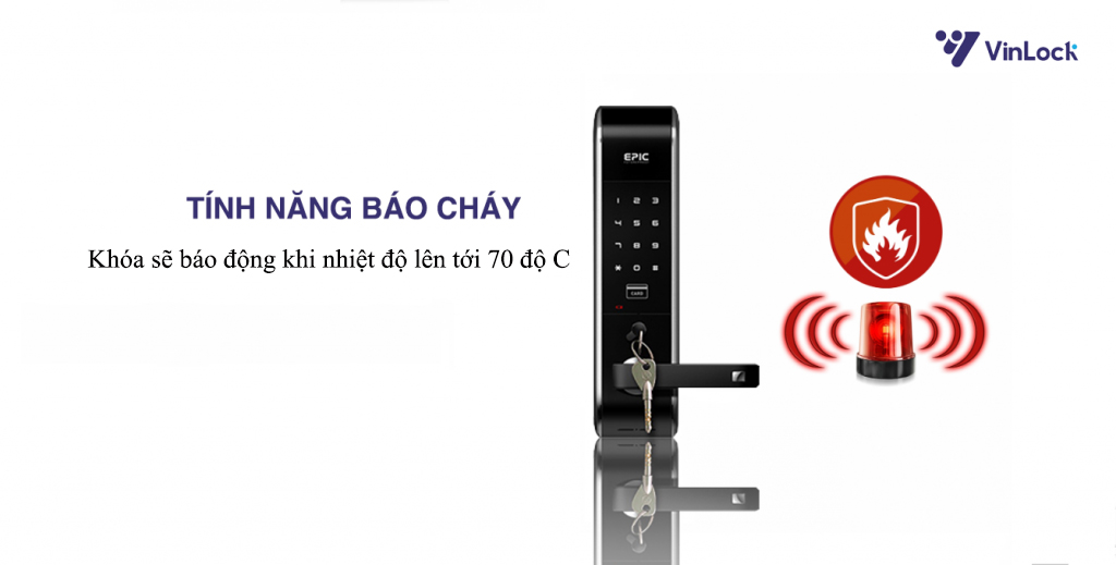 - Báo động khi nhiệt độ lên tới 70 độ C, nếu nhiệt độ phát ra từ bên trong căn hộ, khóa sẽ tự động mở cửa giúp người dùng thoát hiểm an toàn.