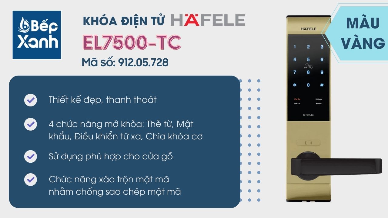 Khóa điện tử Hafele EL7500-TC cho cửa gỗ / Thân khóa nhỏ, màu Vàng, mã số 912.05.728