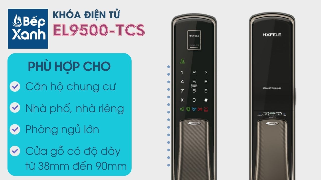 Khóa điện tử Hafele EL9500-TCS phù hợp cho cửa gỗ của chung cư, căn hộ, phòng khách sạn, phòng ngủ Master, cửa nhà phố. Các loại cửa gỗ phù hợp có độ dày từ 38mm đến 90mm đều có thể lắp được.