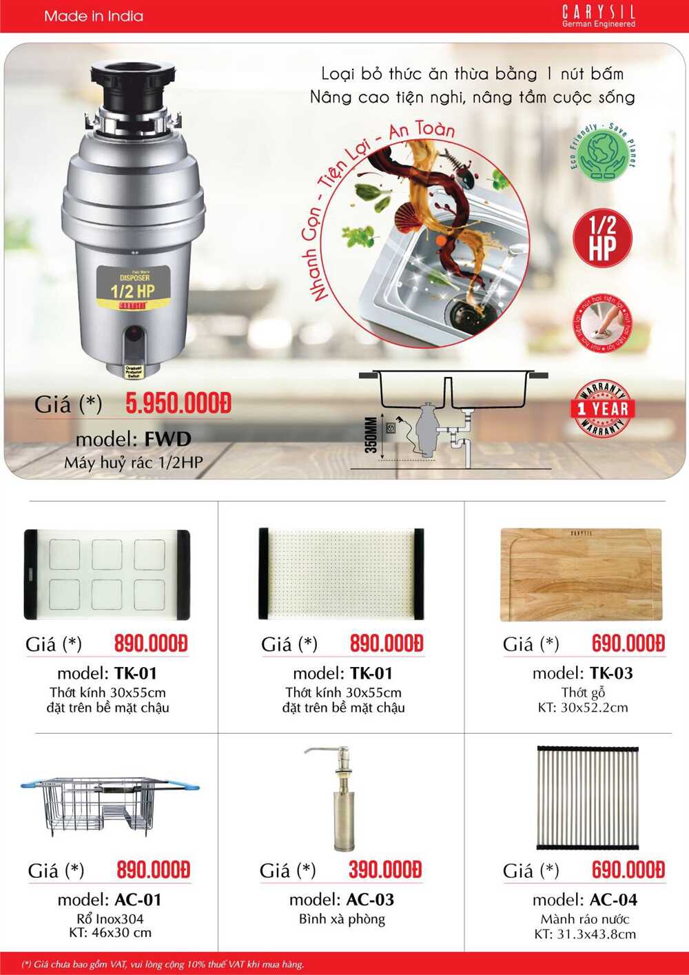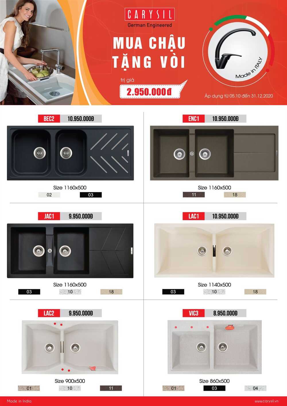 Theo đó, khi mua chậu rửa chén Carysil trong thời gian khuyến mãi, quý khách có cơ hội nhận ngay vòi rửa chén Carysil với giá trị lên đến 2.900.000đ
