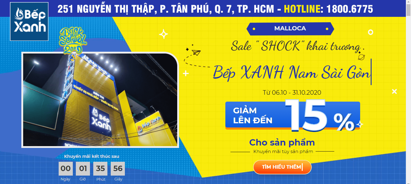 Khuyến mãi Malloca áp dụng tại hệ thống siêu thị bếp Bếp XANH - Siêu thị thiết bị vệ sinh Khải Hưng trực thuộc Bếp XANH Group