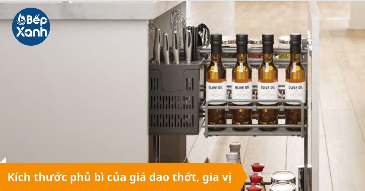 Kích thước phủ bì giá dao thớt, gia vị.