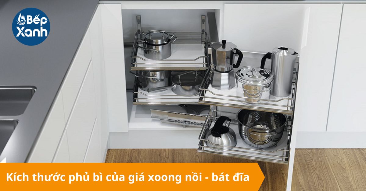 Kích thước phủ bì giá xoong nồi, bát đĩa.