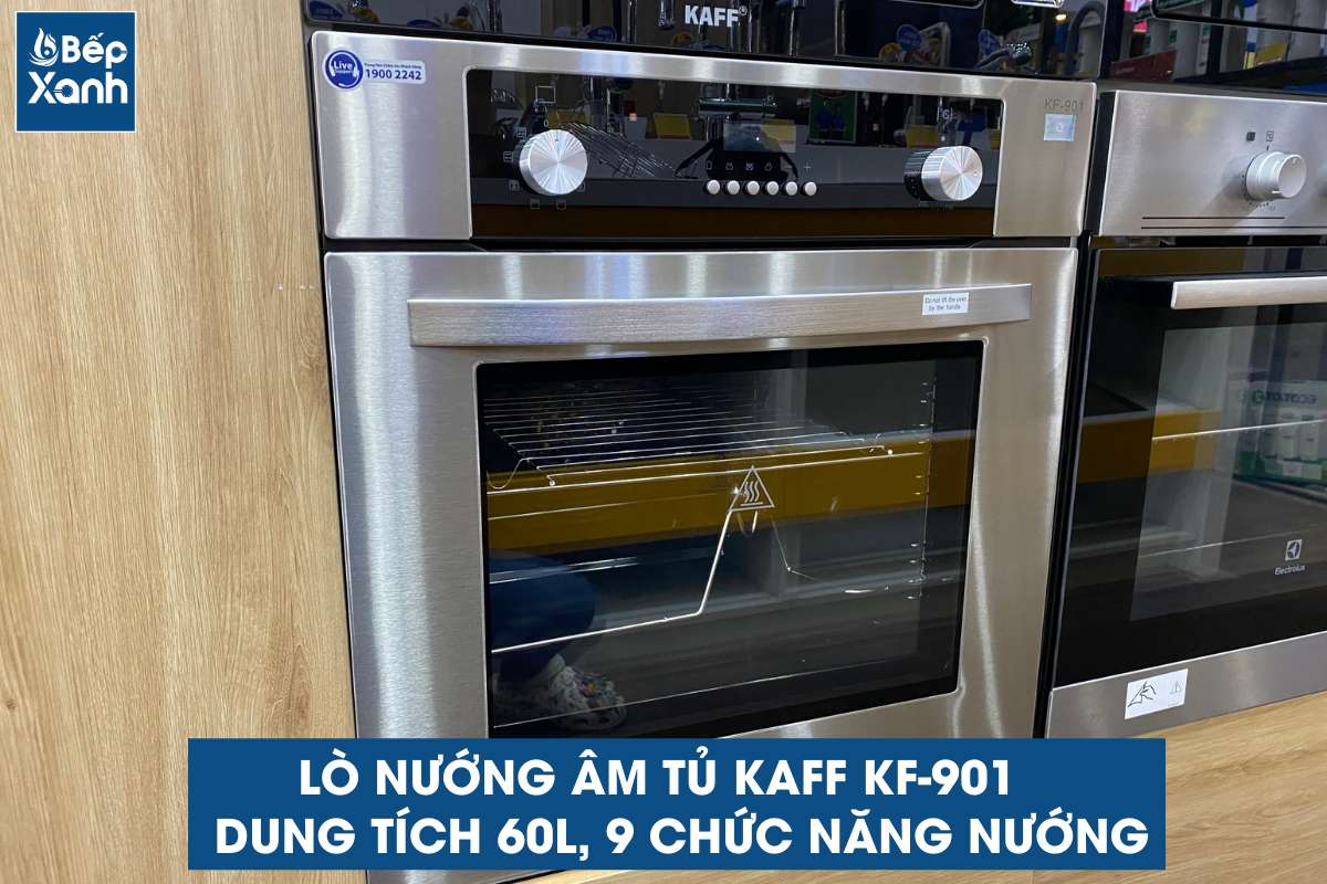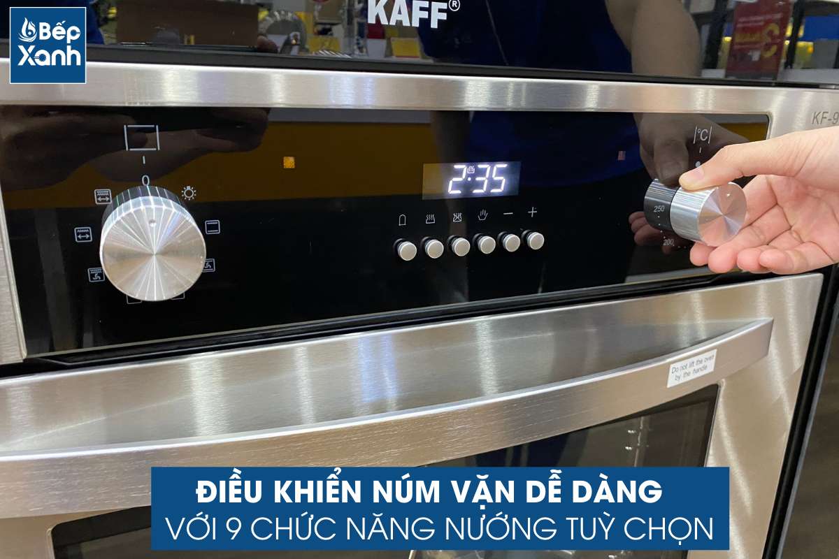 Kaff KF-901 có thiết kế âm tủ gọn gàng, điều khiển bằng núm cơ rất dễ sử dụng. Với 9 chức năng nướng cùng chức năng nướng đối lưu, lò nướng Kaff