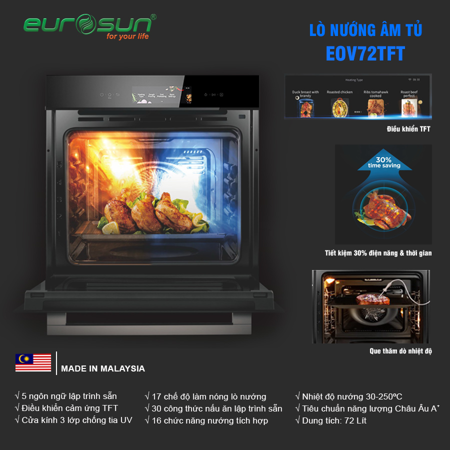 Đặc điểm nổi bật của Lò nướng Eurosun EOV72TFT