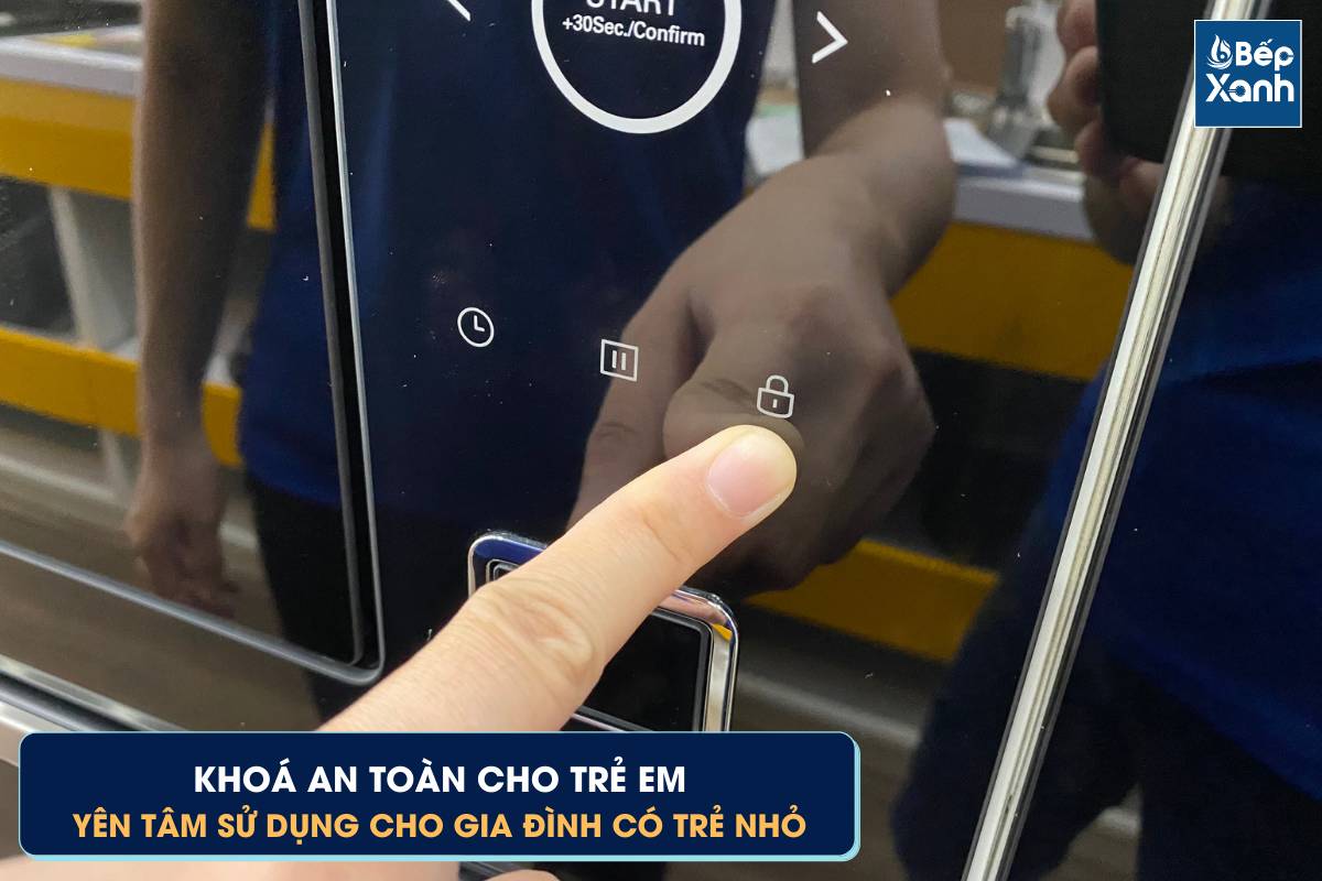 Bên cạnh đảm bảo hiệu suất nấu ăn của người nội trợ, lò vi sóng âm tủ còn sở hữu tính năng an toàn với khoá phím cho trẻ em. Bạn chỉ cần nút 3 giây, chức năng khoá an toàn sẽ được bật để trẻ em không chạm tay vào điều khiển lò.