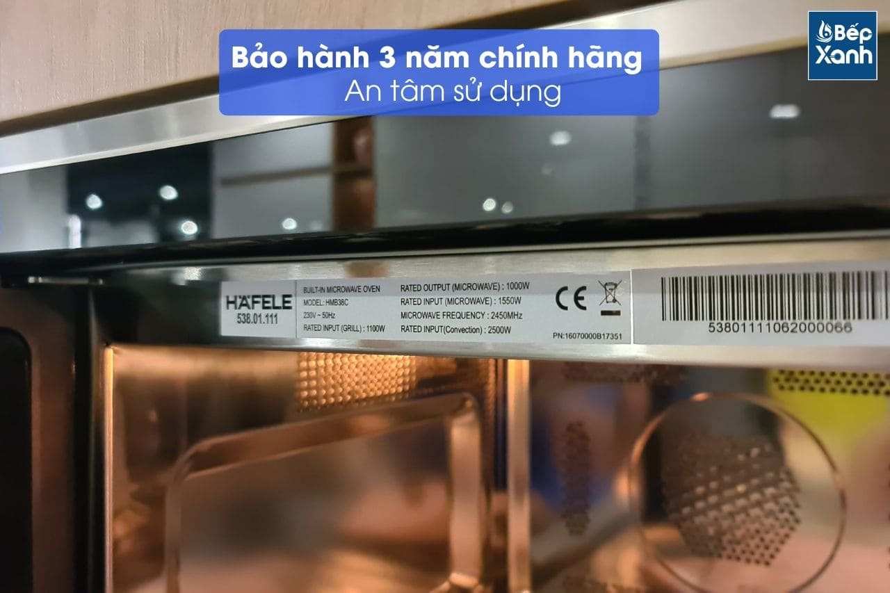 Lò vi sóng kết hợp nướng âm tủ Hafele HM-B38C 538.01.111 được bảo hành chính hãng 3 năm tại nhà.