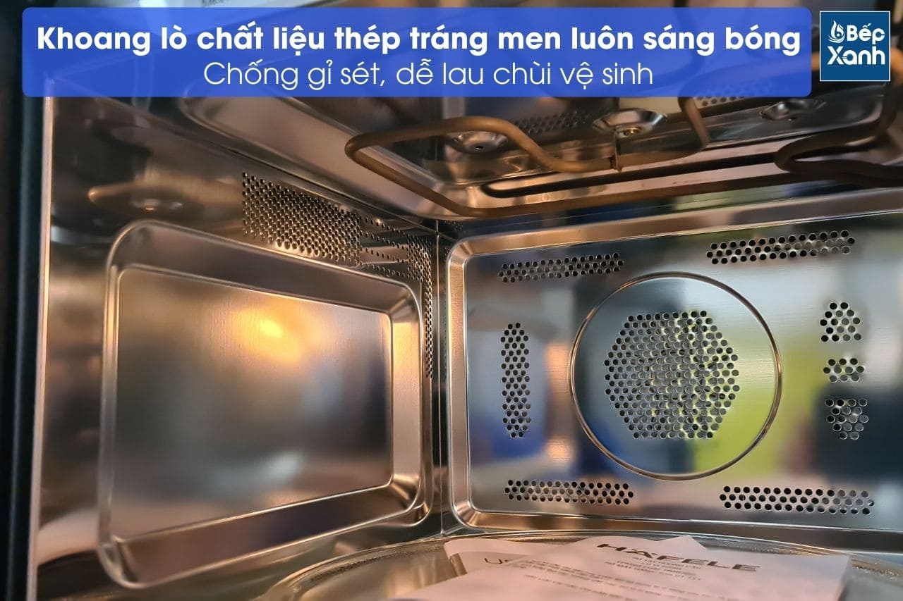 Ngoài ra, khoang lò chất liệu thép tráng men có khả năng chống oxi hóa tốt, bề mặt luôn sáng bóng, vệ sinh dễ dàng.