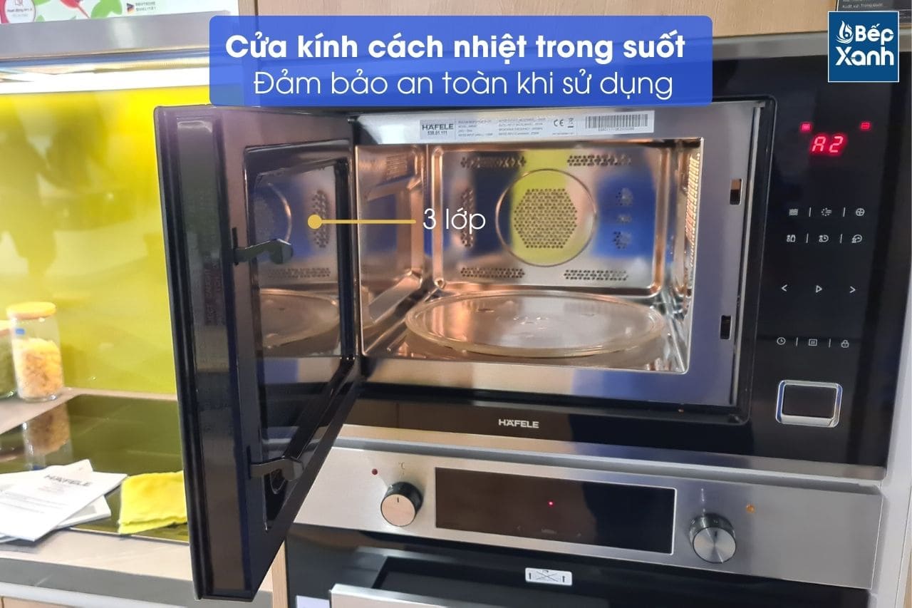 Hafele HM-B38C 538.01.111 dung tích 32 lít, mặt kính cách nhiệt 3 lớp an toàn, khoang lò chất liệu thép không gỉ sáng bóng. Với công suất cao, điều khiển cảm ứng với màn hình hiển thị LED hiện đại sẽ phục vụ tốt nhất nhu cầu nấu nướng cho nhiều gia đình.