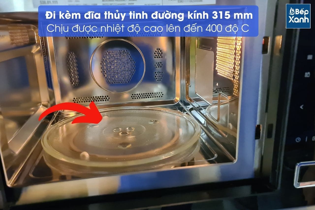 Lò vi sóng được trang bị thêm một đĩa thủy tinh có đường kính lên đến 315 mm có tác dụng chịu nhiệt cao, giúp bạn để thực phẩm lên trên vô cùng tiện lợi.