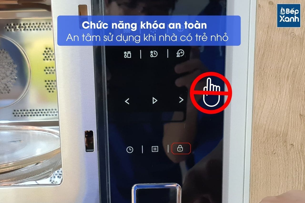 Để đảm bảo an toàn khi sử dụng cho những gia đình có trẻ nhỏ, Hafele đã trang bị trên lò vi sóng này chức năng khóa an toàn cực tiện lợi, khi kích hoạt khóa an toàn, mọi thao tác về sau sẽ bị vô hiệu hóa, khi muốn lò vận hành trở lại, bạn chỉ cần ấn lần nữa vào phím này để hoạt động.