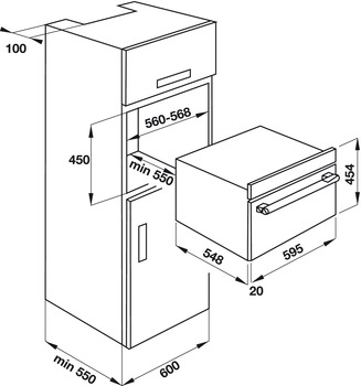 Kích thước lò vi sóng kết hợp nướng âm tủ Hafele HO-KT45B 535.02.731