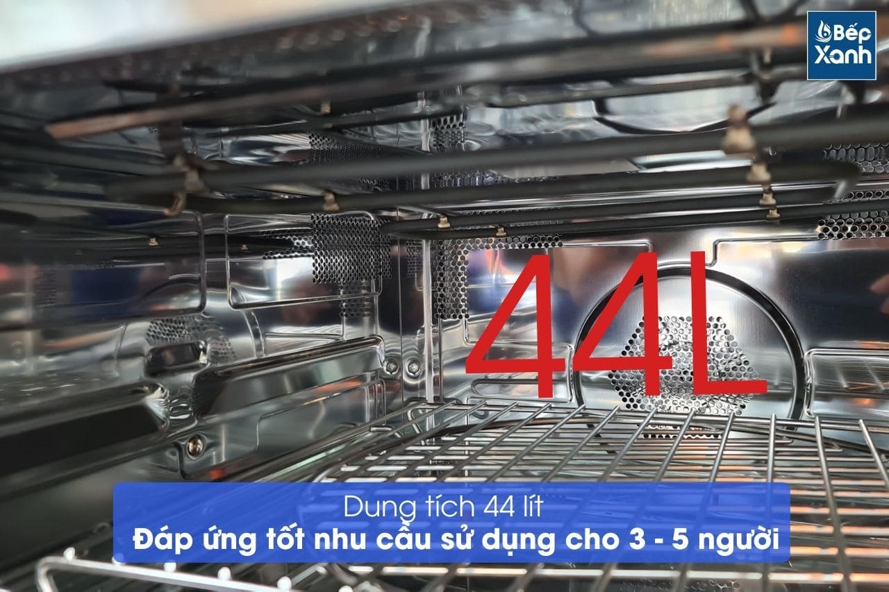Dung tích lò 44 lít, đáp ứng nhu cầu cho gia đình nhiều thành viên