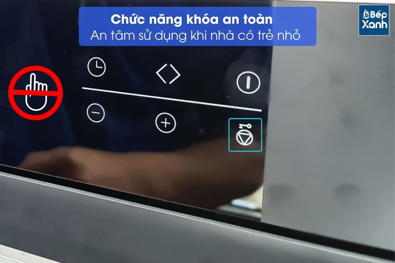 Để đảm bảo an toàn khi sử dụng cho những gia đình có trẻ nhỏ, Hafele đã trang bị trên lò vi sóng này chức năng khóa an toàn cực tiện lợi, khi kích hoạt khóa an toàn, mọi thao tác về sau sẽ vô hiệu hóa, khi muốn lò vận hành lại, bạn chỉ cần ấn lại lần nữa vào phím này để hoạt động.