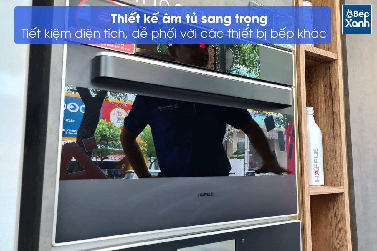 Hafele HO-KT45B 535.02.731 có thiết kế âm tủ gọn gàng, khoang lò chất liệu thép không gỉ sáng bóng. Với tổng công suất 3200W, 13 chương trình nấu tự động cùng màn hình hiển thị TFT hiện đại sẽ phục vụ tốt nhất cho nhu cầu nấu nướng của mọi gia đình.