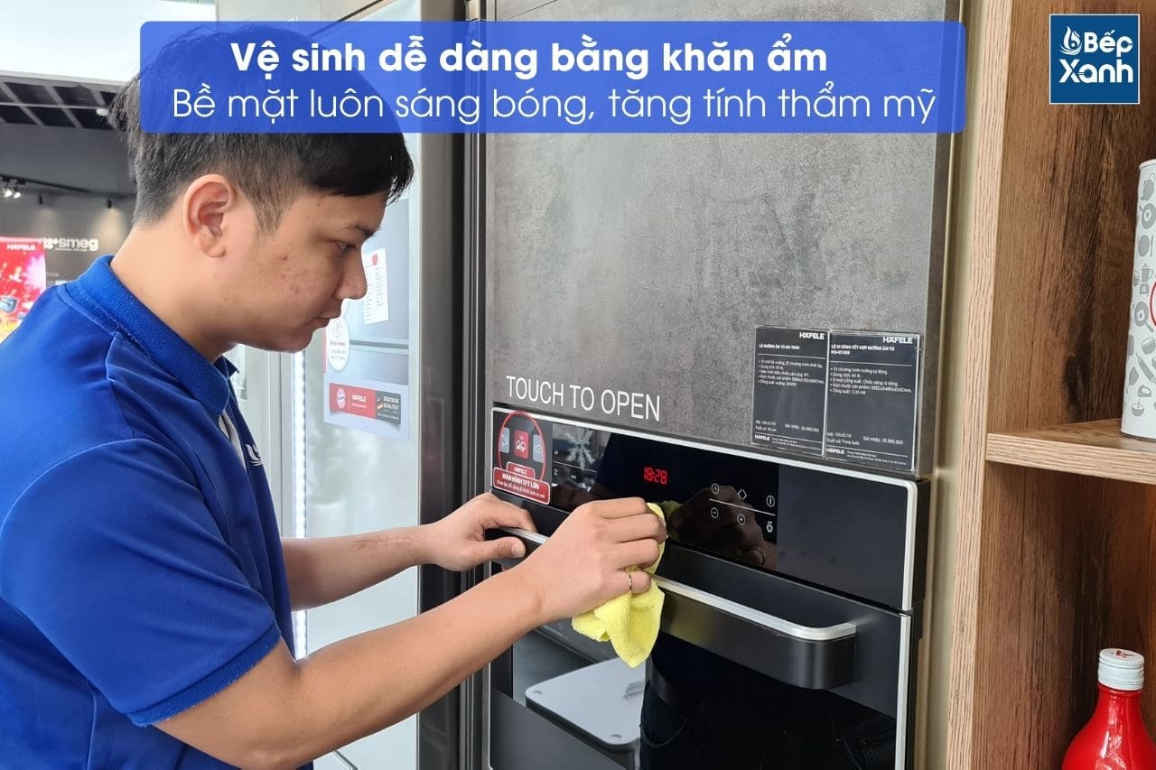 Do thiết kế với mặt kính đen trơn nhẵn nên việc vệ sinh lò Hafele HO-KT45B 535.02.731 khá đơn giản, bạn chỉ cần dùng một chiếc khăn ẩm lau nhẹ trên bề mặt là mặt kính đã trở nên sáng bóng như mới. Đồng thời để khử mùi hôi của thực ăn còn lưu lại bên trong lò, bạn có thể sử dụng giấm để khử mùi rất hiệu quả.