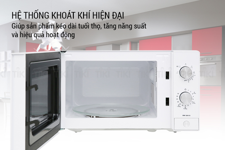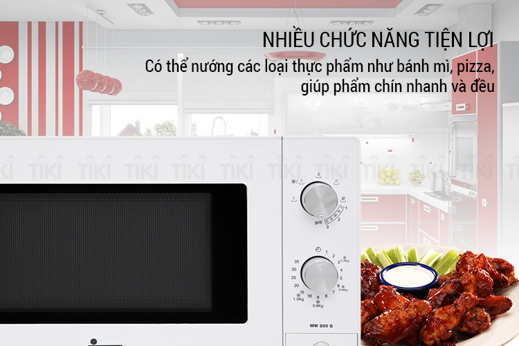 Ngoài những chức năng hâm, nấu như các lò vi sóng bình thường, lò vi sóng MW 200G còn có thể nướng các loại thực phẩm như bánh mì, pizza, giúp phẩm chín nhanh và đều từ trong ra ngoài, có vị thơm ngon và giữ nguyên được chất dinh dưỡng.