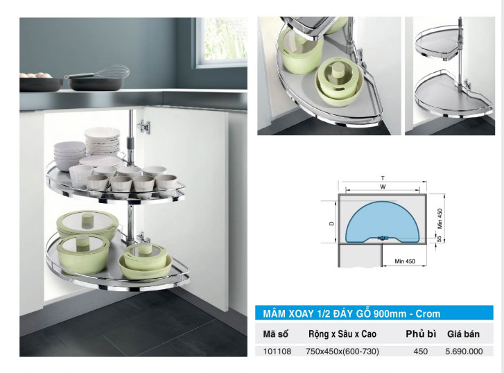 Mâm xoay 1/2 đáy gỗ mạ crom 900mm Higold 101108