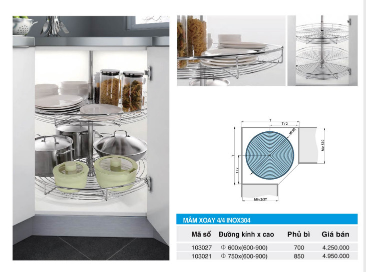 Mâm Xoay 4/4 Inox 304 Higold-103021
