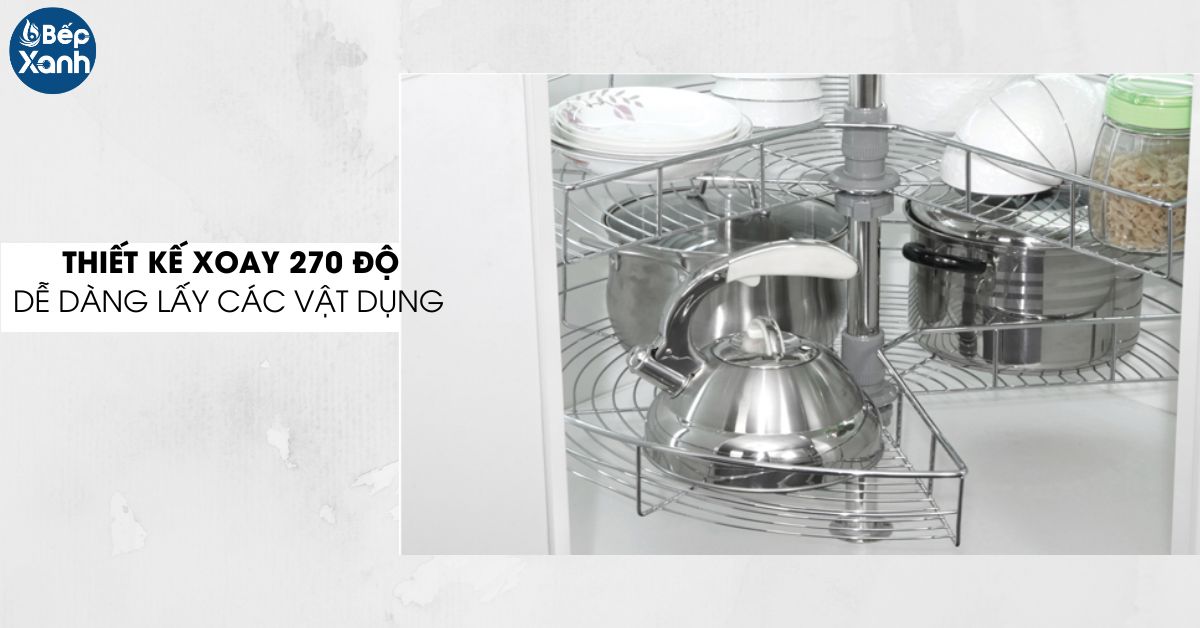 Eurogold TR270E là sản phẩm được thiết kế với tính năng xoay 270 độ, giúp bạn dễ dàng lấy bát đĩa hoặc đồ dùng từ các vị trí khác nhau. Với khả năng xoay linh hoạt, sản phẩm giúp tiết kiệm thời gian và công sức trong quá trình nấu nướng và dọn dẹp, đồng thời tạo sự tiện lợi và thoải mái cho người sử dụng. Ngoài ra, tính năng xoay 270 độ của sản phẩm còn giúp tối ưu hóa không gian bếp, giúp các vật dụng được sắp xếp gọn gàng và tiết kiệm diện tích, đặc biệt là trong những căn bếp có diện tích nhỏ. Tóm lại, Eurogold TR270E là phụ kiện cho tủ bếp vô cùng tiện ích, giúp bạn sắp xếp và lấy đồ dùng một cách dễ dàng và nhanh chóng hơn bao giờ hết.