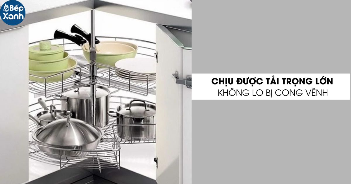 Mâm xoay inox Eurogold TR270E chịu được tải trọng lớn, đảm bảo an toàn và độ bền cao cho người sử dụng. Với khả năng chịu tải lên đến 30kg, sản phẩm có thể đựng và xoay được nhiều đồ dùng bếp, từ các bát đĩa, chén dĩa đến các dụng cụ nấu nướng như nồi, chảo hay các loại thực phẩm khác. Tính năng chịu được tải trọng lớn của kệ góc tủ bếp này là một yếu tố quan trọng giúp cho sản phẩm trở nên hữu ích với người dùng.