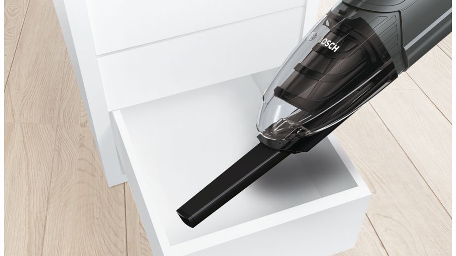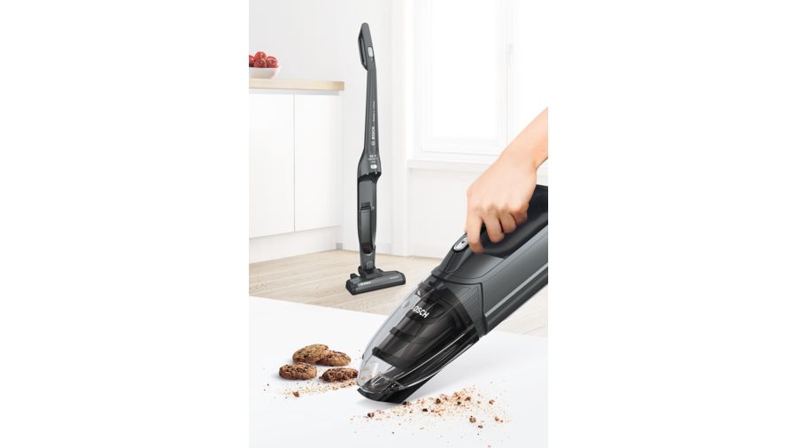 Máy hút bụi BOSCH có chân đứng độc lập, dễ dàng đặt ở bất cứ đâu trong gia đình và sạc tiện lợi tại bất kì ổ điện nào.
